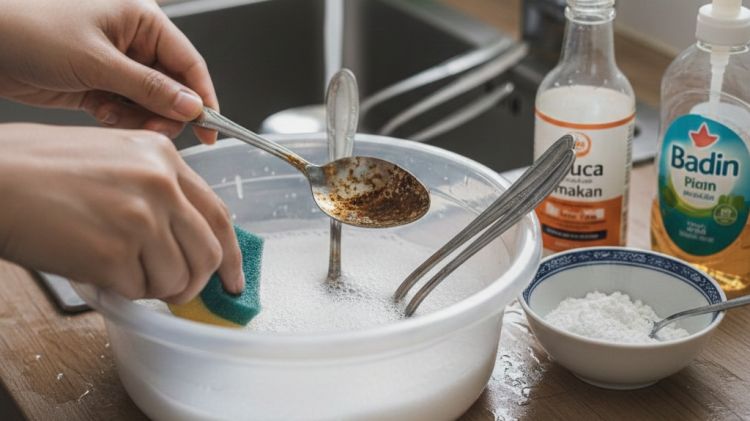 Terakhir, bilas sendok dengan air mengalir sampai benar-benar bersih. Pastikan tidak ada sisa larutan yang menempel agar sendok aman digunakan kembali. Hasilnya, sendok yang tadinya kusam dan penuh bercak akan kembali kinclong seperti baru beli.